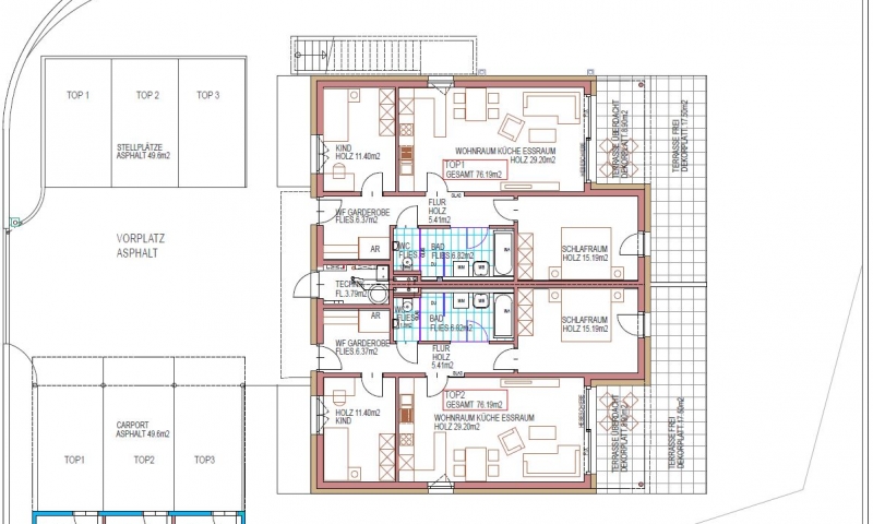 Die Wohnanlage besteht aus 3 Eigentumswohnungen (Top 1-3).